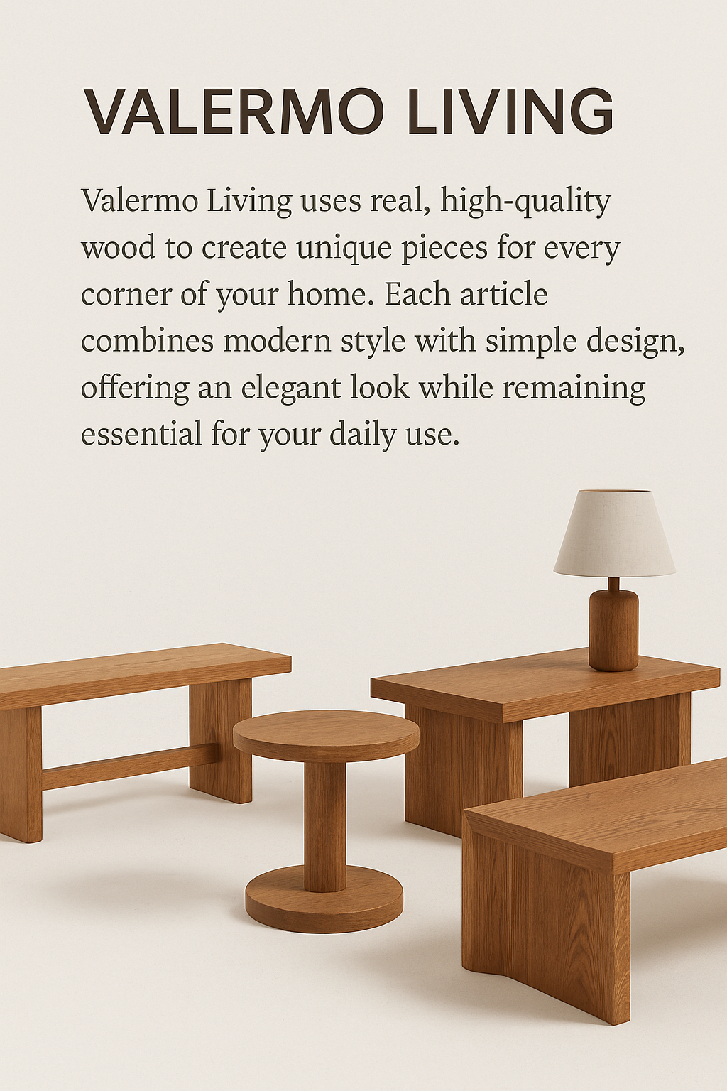 "Valermo Living uses real, high-quality wood to create unique pieces for every corner of your home. Each article combines modern style with simple design, offering an elegant look while remaining essential for your daily use.